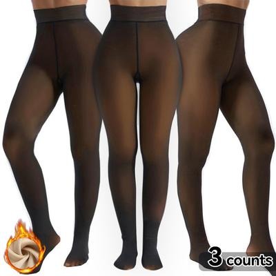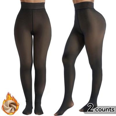 Women's Sheer Fleece-Lined Tights – Thick Warm Winter Thermal Leggings, Translucent Pantyhose for Cold Weather
