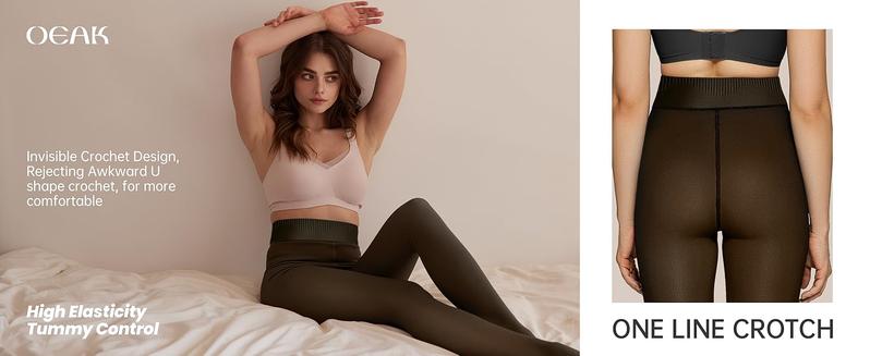 ·Fleece Lined Tights for Women - OEAK Invisible One-Line-Crochet Tights are super stretchy, soft, and comfortable. The high-quality material is durable and non-see-through, offering full coverage with a 4-way stretch. These warm leggings provide excellent freedom of movement during workouts and activities without slipping off the waist. The Ribbed high waist design also offers good support and control for the belly.