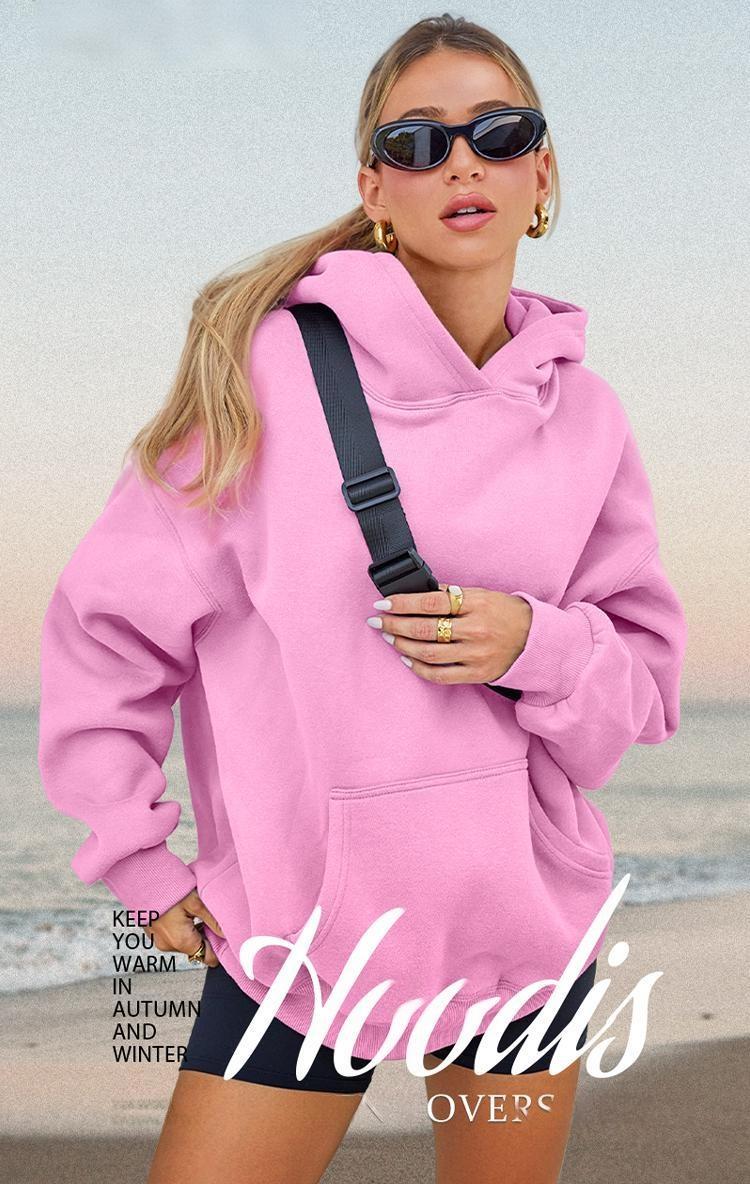 Oversized Fleece Sweatshirt: This hoodie is designed for comfort and style. It features a fleece material for warmth and a relaxed fit. Perfect for fall, it offers a cozy feel.